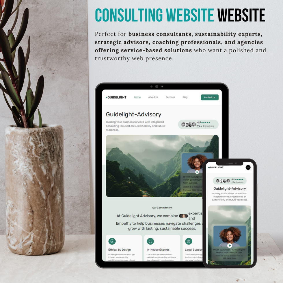 Guidelight — A modern, minimal consulting website built for professionals and agencies focused on strategy, sustainability, coaching, and future-ready services.