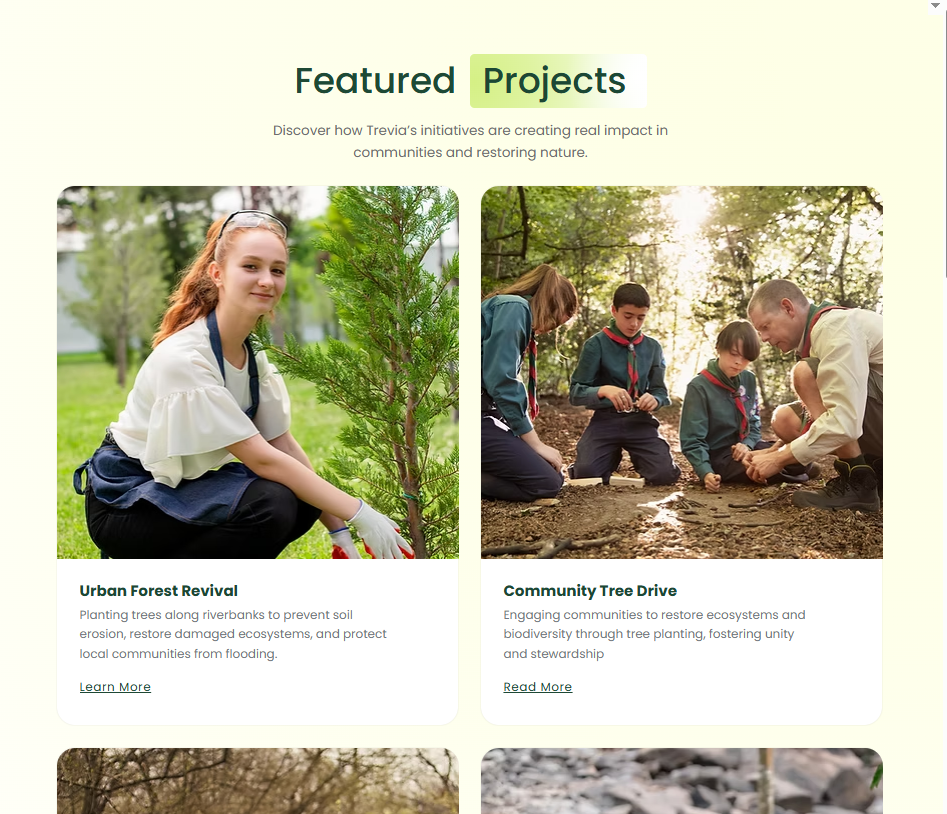 Trevia is a modern, minimalist, bold, and elegant Wix Studio template designed specifically for nonprofit organizations focused on tree planting and conservation. This clean and professional design helps nonprofits showcase their mission, programs, and impact while attracting supporters and volunteers online.